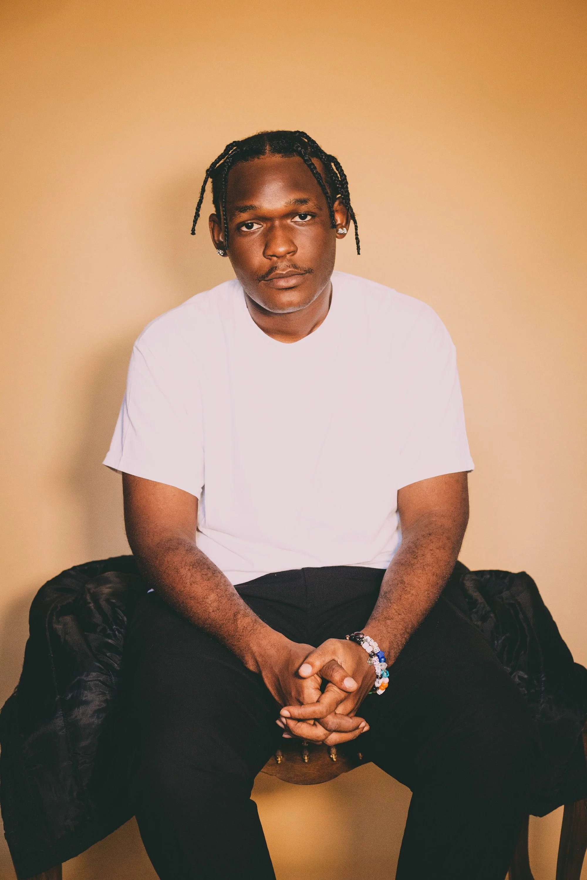Keith Thompson (b. 1996) is a studio artist, curator, and framer from Nassau, The Bahamas. He pursued an Associate of Arts degree at the College of the Bahamas, choosing instead, to branch out into a more robust practice. Thompson creates work about his experience growing up in a neighborhood rife with crime and gang-culture. His paintings exercise his own dread of easily falling into criminality. Thompson acknowledges that his image as a Black male subjects him to these expectations — and with delicate brush strokes, his own vulnerability and humanness are pronounced, countering the harsh perspective in which society views him.